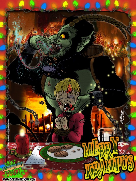 Howdy there, Scream Freaks, and Scary Christmas! We’re normally all about celebrating Krampus around these parts, but it seems he may not be quit as popular this year compared to last Christmas. We mean, he’s still popular but just not in your face as much with only 2 shitty movies this season (Krampus 2: The Devil Returns & Krampus Unleashed) and barely any TV appearances or Twitter buzz. But don’t worry you winter hauntin’ wooly booger . . . we still believe.