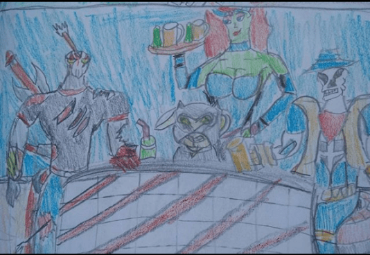 Scream Freak Sparky 357’s fan art of his original monster hero hangin’ at the Howl-Inn Grub and Spirits with his favorite animated horror host. See the rest of Sparky 357’s fan art in the gallery!