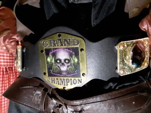 The best treat this season, however, was the ultimate Summer surprise when we found out we won a hell of a prestigious title from a super Scream Freak! Thanks to Timber at tmbrwlff.wixsite.com/toxic-tales, y’all’s favorite animated horror host has been recognized as a Horror Host Heavyweight Champion! Yee-haw! A perfect follow-up to our Silver Bolo Award from The Last Drive-In with Joe Bob Briggs, we’re incredibly humbled and appreciative to Timber for goin’ out of his way to show us how much our show means to him. Especially after he mailed us the championship belt to go ‘long with the title. Sweet tater stompin’ sasquatches, this thing is top shelf and a real ego booster! We’ve just been wearin’ it ’round the Howl-Inn Grub & Spirits for days now, lettin’ it act as a sign that begs onlookers to ask, “What’d you accomplish?”