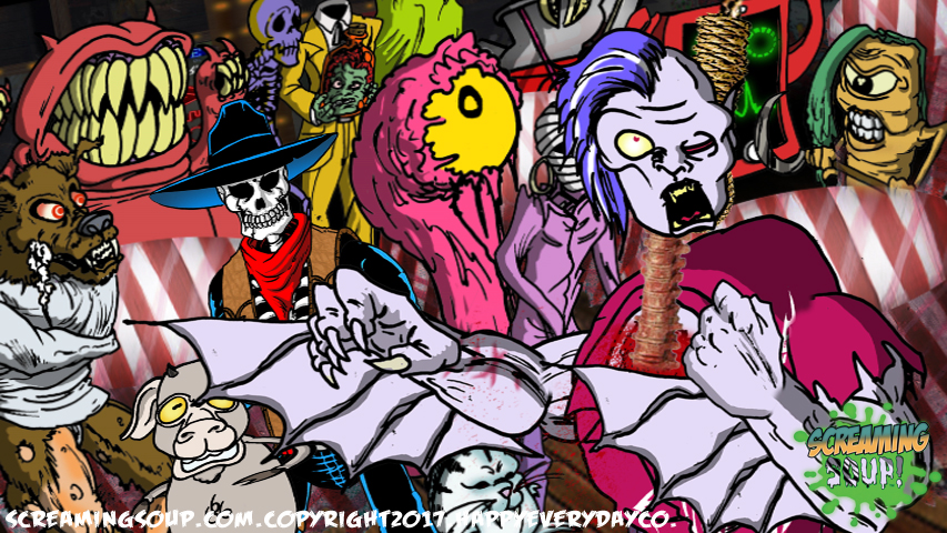 Deadwest reviews Hardware and Death Machine while the Iron Horsemen of Doom invade the Howl-Inn Grub & Spirits to capture Billy. Cast includes Deadwest, Billy, Mandy, Peyote, Eb’nstein, Catfish, Aleena, TP Mummy, Fera, Deadbeat, Roogaroo, Mexican Dracula, Doc Rex, Papa Kaka, Voodoo Bitch, Heck Machine, Brainbasher, Death, War, Famine, Pestilence, and Bonepick. Stay up to date on all our latest videos by subscribing to our YouTube channel! Click HERE for Scream Freak Film Contest details!