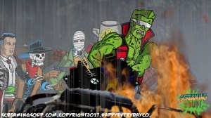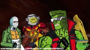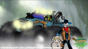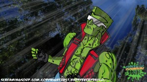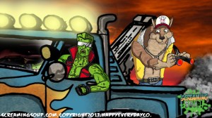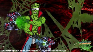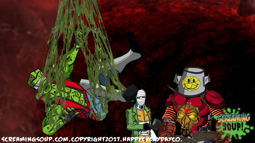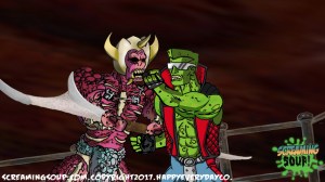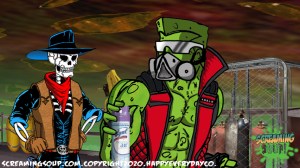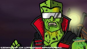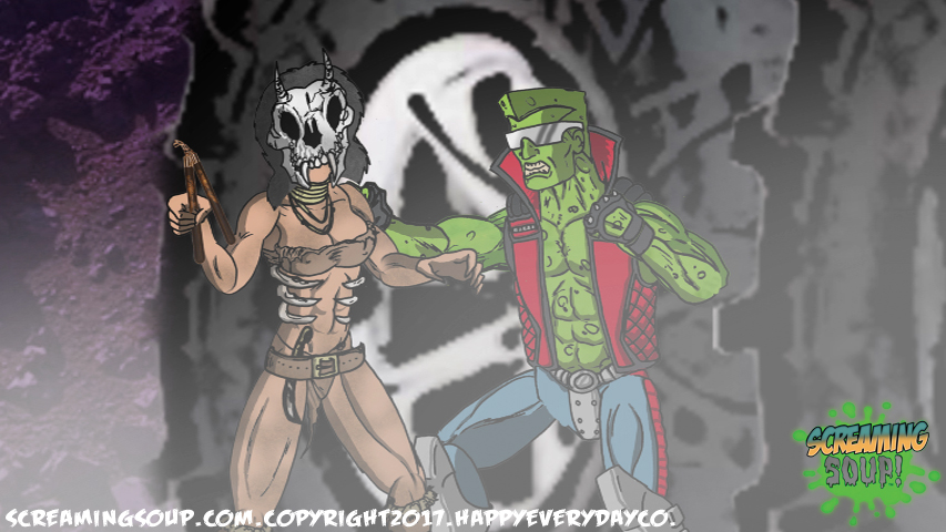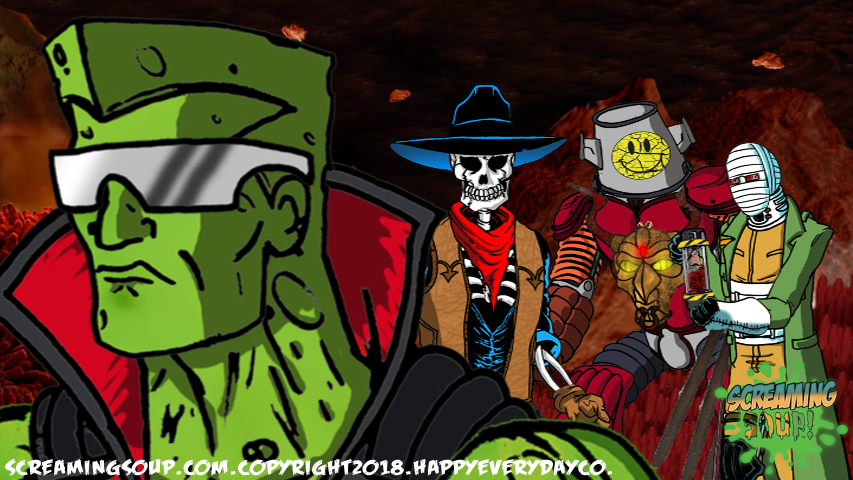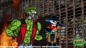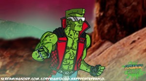 The toughest moon cheese man Deadwest has ever met, Brainbasher is a two-fisted interstellar macho man from the Crosslands’ twin moons. An obnoxious brute known for towing abandoned spacecrafts and throwing down with wild mutants for fun, Brainbasher is a firm believer in brutality over brains, relying on his fists to get him out of any situation. His violent lifestyle wasn’t appreciated by most, however, until an armada of alien brains invaded the moons for their mineral mines, annihilating all that stood in their way. With more guts and glory than any army could hope to have, Brainbasher battled fist to brain with the cosmic foes, putting an end to their tyranny with the help of Deadwest and Roogaroo. He’s since been recognized as a hero by the moons’ inhabitants and makes regular visits to the Crosslands to join his war buddies for more adventures.