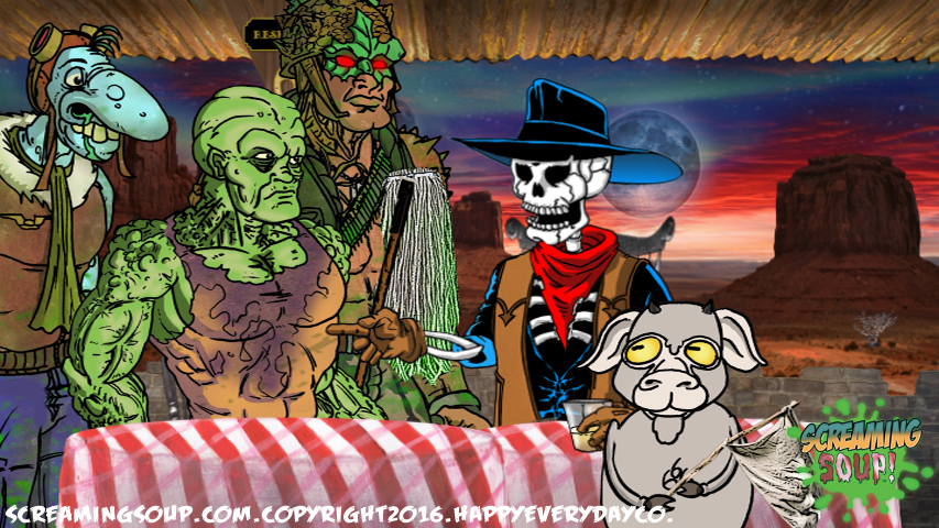 During his travels, he partners up with Billy, a runaway beast of the apocalypse, and they find the Howl-Inn Grub and Spirits where Deadwest finds inspiration for how to finally achieve his dreams for worldwide recognition. He will make the scariest movie of all time and become a celebrated horror icon! Seeing how many monsters have failed at this same attempt, Deadwest studies any and all horror/sci-fi movies he can get his hands on to learn what combination of filmmaking ingredients make for an A-grade soup of a scary film. Until he learns the perfect recipe for success, Deadwest has many adventures at the Howl-Inn, making new friends and enemies with each review.