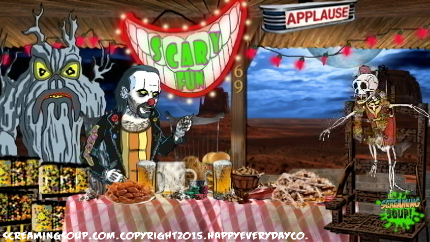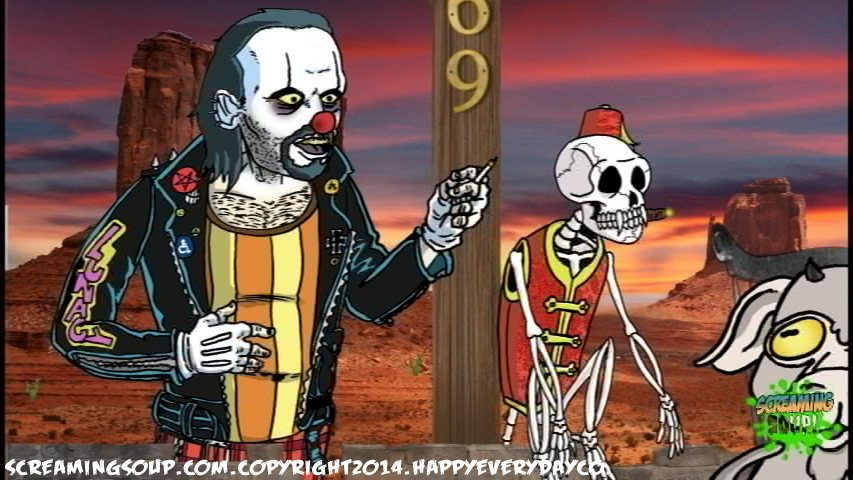 Funnybone is Buzzkill’s cigar smoking chimp sidekick on the Scary Fun Show. He’s a clever animal that exhibits violent bursts of energy from time to time and completely loyal to Buzzkill. He likes to play tricks on others, including Buzzkill, and hates to be surprised. He has proven smarter than Buzzkill before and helps him in his efforts to ruin Deadwest and Billy.