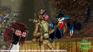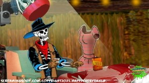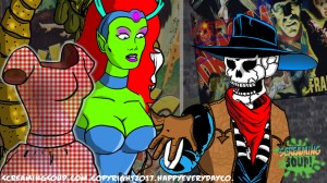 Deadwest’s specter girlfriend who’s a model turned fashion designer. She’s a classy girl who fell in love with Deadwest for his larger than life ambitions and off color humor. In contrast to Deadwest’s outspoken personality, Mandy is more reserved and elegant in her demeanor, but enough wine easily makes her just as lively as he is. She’s very competitive at games and enjoys reviewing a good horror movie with Deadwest. She despises the kind of horror movies that involves harming animals as part of the story which has led to plenty of clashes between the two phantom lovers. With a bond as strong as theirs, however, no argument drags out for long, and they’re back together and dancing to their song, “Heart Shaped Box” by Nirvana.