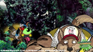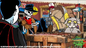 Peyote is a werecoyote trucker who makes deliveries all over the Crosslands. One of his regular stops is at the Howl-Inn Grub and Spirits where he often joins Deadwest for a drink during a horror movie review. Typically a happy go-lucky type who can get easily annoyed, Peyote is just looking for a good time wherever he goes. He’s normally late to events because he can’t tell time and has an addiction to chewing gum.
