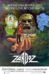 In the far flung future, Sean Connery is a manipulated mutant who gets wise to his flyin’ head fer a god, Zardoz, and discovers his savage world is really at the mercy of a buncha froufrou immortals livin’ in a utopian bubble he plots to pop while they study his hard-ons. Callin’ this flick weird is an understatement, Scream Freaks! While this sucker presents a unique ‘nough idea fer a memorable sci-fi flick and cleverly casts the original James Bond to keep me invested in his character’s fate, it’s narrative’s a little all over the place and unravels into a tolerance testin’ mess by the final act that feels like three different endin’s. Aside from the everlastin’ overlords happily beggin’ for death like it’s candy and the goofy mastermind behind Zardoz hammin’ it up fer the screen, my favorite part is Connery sayin’, “Potatoes?” Boobs on horseback, gunshots to the face, geezer, time travelin’, magic crystal nonsense, hitch hikin’ in gun vomittin’ stone heads angry at evil penises, forced farmin’, psychic attacks, plant eatin’ defenses, naked folks in baggies, laboratory prisms, forehead crystals, know-it-all rings, horn dog inducin’ sweat, jump cuttin’ family portraits, garden party massacres, geezer parties, and Connery in a dress! 3/5!