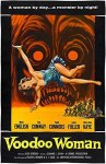 Deep in the jungle, a tribe’s witch doctor helps a mad scientist combine the magic of voodoo with biochemicals to turn folks into fugly super bein’s, and just when they didn’t think they had the right test subject, a homicidal treasure hunter trades herself as a guinea pig fer gold while her captive tour guide fights fer an escape from the movie. A competent black and white flick with likeable heroes and damsels as well as entertainin’ villains, the only thang I’d bash this fer is its lack of monster footage and failure to ramp up the action the first (and what should’ve been the only) time the femme fatale’s turned into the cursed voodoo woman. I’d like to think the filmmakers were shyin’ ’round the monster fer a big reveal at the end, but I think they were just too embarrassed to show this recycled booger suit from The She-Creature (1956). Fatal gunshots to the back and gut, golden idols, monstrous dissolves, emotionally abused trophy wives, spears to the back, basement laboratories, attempted human sacrifices at the stake, insta-telepathy, voodoo dolls, conga drum concerts, lap singers, offscreen rape and murder, and one of the stupidest falls to someone’s death ever committed to celluloid! 3/5!