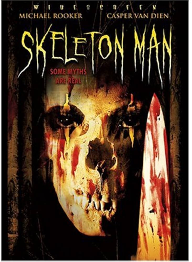 When an archeological study of Native American artifacts somehow summons a teleportin’ grim reaper on horseback with a one track mind fer killin’ anyone he sees breathin’, an unconvincin’ squad of Hollywood lookin’ soldiers are assigned to take him out at any cost. One of the most inept flicks ever committed to celluloid, this disasterpiece has to be seen to disbelieve, Scream Freaks! More sours than sweets, nothin’ ’bout this story makes sense right out the gate. The geography’s all over the place, scenes and sets confusingly mesh together, the soldiers look more like hikers with army surplus gear thrown on ’em, the editing’s all elbows, and the headlinin’ mon-star is beyond ridiculous. The filmmakers stick in a hobo’s exposition dump over army beans halfway through that hints the Skeleton Man might be the ghost of some crazed Native American warrior, but if that’s the case, why does he look like a Party City costume of Skeletor from the 1987 He-Man movie? I mean, he’s so far removed from anythin’ remotely Native American, any origin story I pull outta my tailbone ’bout aliens or robots makes more sense! Shoot ’em ups galore, semi-truck crashin’, explosions galore, grenade trappin’, electrocutin’, Tom and Jerry chasin’ in chemical plants, skulls ripped outta chests, head smashin’, decapitatin’, spearin’, stabbin’, impalin’, Skeleton Man-O-Vision, teleportin’, axe fightin’, sword fightin’, tribal massacres, arrows to the chest, scalpin’, fatal freefallin’, and limb severin’! 2/5!