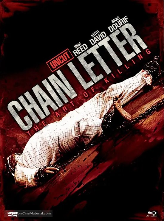 When a gang of students receive an email with chain letter instructions, most of ’em delete it and regrettably find ’emselves targeted by a literal chain wieldin’ hacker of a mad man who wants to rid the world of internet technology. On the surface, this flick looks like a sweet time. Top shelf lookin’ production, decent gore, horror hall o’ famers like Keith David, Brad Dourif, Michael Bailey Smith . . . But it’s actually one big sour of a watch thanks to its confusin’ theme of a killer — the Chain Man. While laughable to have a slasher who’s so literal with the chain puns, his whole character makes zero sense. I don’t think he’s supernatural, but he’s strong ‘nough to hook folks like fish through skylights and squeeze other victims’ faces into pieces with chains? He might be part of a technology-hatin’ cult, but uses that same tech to track and kill people with? What’s the point of the chain letter if he’s gonna bend his own rules and still kill those who do pass it on? Is the Chain Man goin’ international if the chain letters are passed on to folks outside the country who delete ’em? As fast as email works, how many saps is he plannin’ on killin’ and on what time table? This would make waaay more sense if this was a boogey man curse like The Ring. Kidnappin’, face splittin’ with chains, harpooned computer nerds, folks ripped in two ‘tween speedin’ cars, computer hackin’, computer viruses, ankle slicin’, whippin’ with chains, head bashin’ with cistern lids, rub-a-dub boobs, rain galore, and funeral interrogations! 2/5!