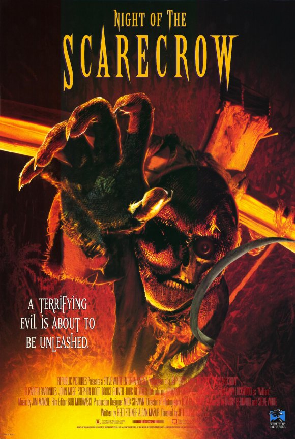 A drunken joyride accidentally releases a horny warlock’s spirit from his cornfield grave to possess a fat headed scarecrow, and the reborn hay man’s first order of business is exactin’ gory revenge ‘gainst the ancestors of the town leader who killed him over a century ago. When it comes to killer scarecrow flicks, this undercelebrated gem is definitely in my top three, Scream Freaks! It suffers from an roster of criminally flat characters, and the scarecrow’s dialogue feels a little too modern at times given what century he’s from, but it’s a terror-ific monster movie that checks all my boxes. It delivers an inventive sub-genre bendin’ slasher who dishes out a butt-load o’ special effects deaths with magic straw I ain’t seen ‘fore, nudity, the filmmakers deliver some effectively creepy moments ‘long with action-packed sequences, and features a pretty solid cast of actors who make it all believable ‘nough to be fun. A must see! Drunken joyridin’ on bulldozers, magical graves, roofied drinks, crucifyin’, human matchsticks, bullets to the face, mouth sewin’, topless orgy flashbacks, boobs in a van, bodies eruptin’ with roots and hay, finger seeds, explodin’ rooks, explodin’ barns, car wreckin’ cop killin’, sickle throwin’, hay implantin’, hay needles to the face, face sewin’, hay camouflagin’, arm severin’, and games o’ keep away with human remains! 4/5!