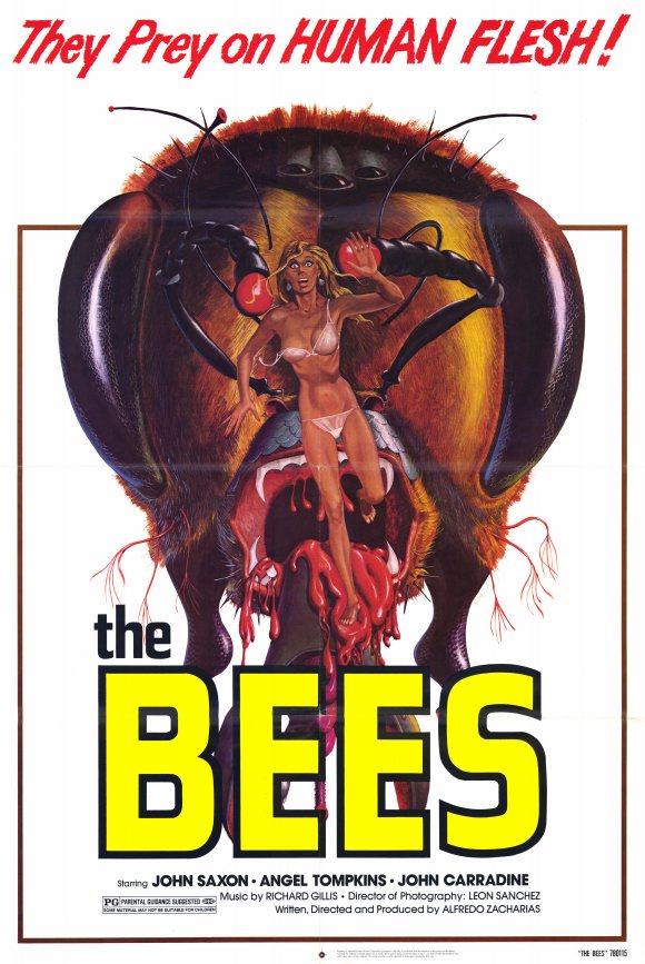 When mankind’s greed for honey unleashes a new intelligent species of killer bees on America, beekeepin’ scientists, John Saxon and John Carradine, are solely tasked with killin’ the fatal stingin’ buggers before they organize a rally for a seat at the United Nations. This environmental horror is simply ridiculous for the funniest reasons. Widows quickly get over their dead husbands at the sight of Saxon, Carradine can’t do a German accent to save his life, the scientists’ race to beat the bees lacks tension and doesn’t match the bees’ steady escalation of danger, and when Saxon and Carradine can’t destroy the bees with gay chemicals, they decide to join ’em as diplomats promotin’ man’s co-existence with the new dominant species. You just gotta see it to disbelieve it! Honey thieves, botched bee smugglin’, stock footage aircraft crashes, gunshots in the back, stock footage army attacks, weird incest kind-of moments, plans for turnin’ bees gay, interspecies negotiations, and artificial bees! 3/5!