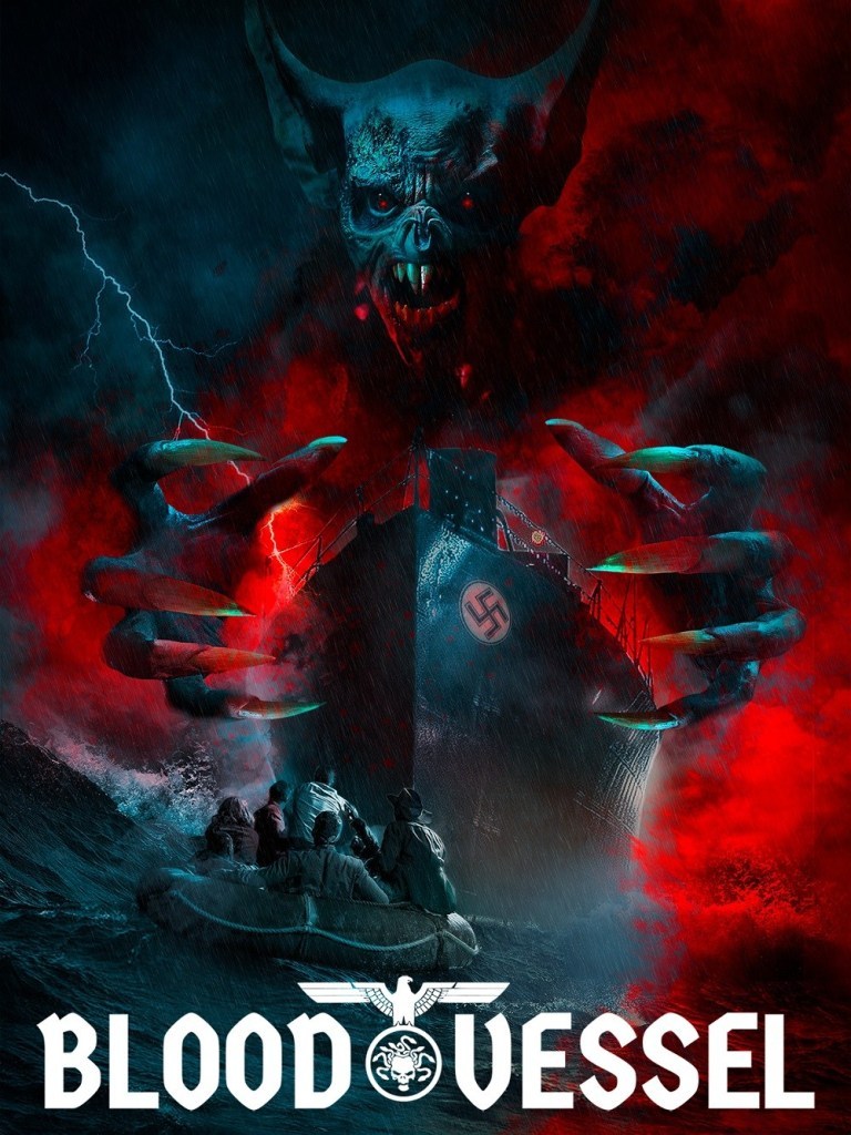 A life raft full of World War II soldiers from every corner of the globe boards a Nazi ghost ship, and after some lengthy explorin’, they discover the kraut vessel’s haulin’ a buttload of vampires below deck bustin’ to be free. A well made period piece the seasoned horror fan will pick apart as John Carpenter’s The Thing meets Ghost Ship meets The Strain TV series, Blood Vessel is entertainin’ ‘nough for the most part, but it kinda drags its boots from one scene to the next with alotta misplaced character buildin’ that don’t ‘mount to much. Mainly ’cause the story never really hones in on any particular character ‘mong its ensemble for me to relate to much less care ’bout as I indifferently watch ’em fight a buncha cool lookin’ fangers who never do anythin’ all that excitin’. Mind controllin’, bloodsuckin’ young’ns, gunfightin’, propeller mincemeat deaths, contagious scratches, monstrous transformations, crispy corpses, nearly decapitated captains, fancy coffins, stabbin’s, explosions, drownin’s, neck bitin’s, head knockin’, and shapeshiftin’! 3/5!
