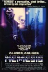 Leap froggin’ into the future, an ex-cyborg cop is forced out of retirement for a search and recovery mission that turns out to be a vital turnin’ point for a pendin’ war between humanity and androids. The biggest sweet ’bout this melodramatic sci-fi flick is it looks amaze-balls from its sculpted actors to the rich palette of colors jumpin’ off some of the sharpest cinematography I’ve ever seen. Really impressive action sequences as well, makin’ me think this film could’ve inspired moments in The Matrix. Nemesis‘s sours mainly stem from the story which leaves a lot to be desired with unnecessary jumps over time, set-ups with no payoffs, and an uneventful story arc. Warzone gun fights, explodin’ buildin’s, arm rippin’, chicks blown in half, boobs, scalpin’, fingers bitten off, assassinations, airplane escapes, reconstructed cops, cybernetic legs, dead dogs, cybernetic eye surgery, cardiac bombs, and one of the most jittery weirdo stop-motion fights with an android puppet ya have to see to disbelieve! 3/5!