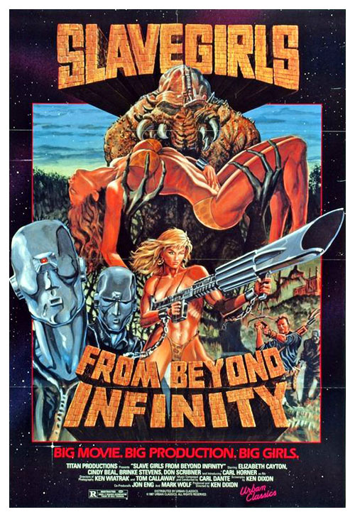 In a far flung future, an ex-miner plots her escape from space after bein’ wrongly sentenced to hard time on a cramp little prison ship full of feisty caged women under the watch of a masochistic warden and her torture happy crew. A women in prison flick set in outer space from B movie favorite Fred Olen Ray sounds like an awesome time to turn yer noodle off fer, but this sucker unfortunately fails to match my enthusiasm. Despite its respectable production value, it fails to give me a heroine with any substance much less character development to break her out from the rest of her one note cellmates and horribly squanders its more engagin’ heavies in one forgettable scene after ‘nother. This should be waaay more fun that it is with more cheesy scene chewin’ dialogue, laser fightin’, and boobs thrown in, but at least I get to see the e.t. from The Deadly Spawn get recycled for a space booger the jail birds gotta fight. Space leech bitin’, whippin’, offscreen paddlin’, puppet fightin’, flash o’ boobs while gettin’ dressed, malformed hands, little person violence, cat fightin’, humorous harmonica diddies, deadly frisbee slop plates, hand severin’, explosions, dry humpin’ with motorboatin’, ghost priests, misguided holy rollers, mind control procedures, mutant rat puppets, and ittie bittie RC bots! 2/5!