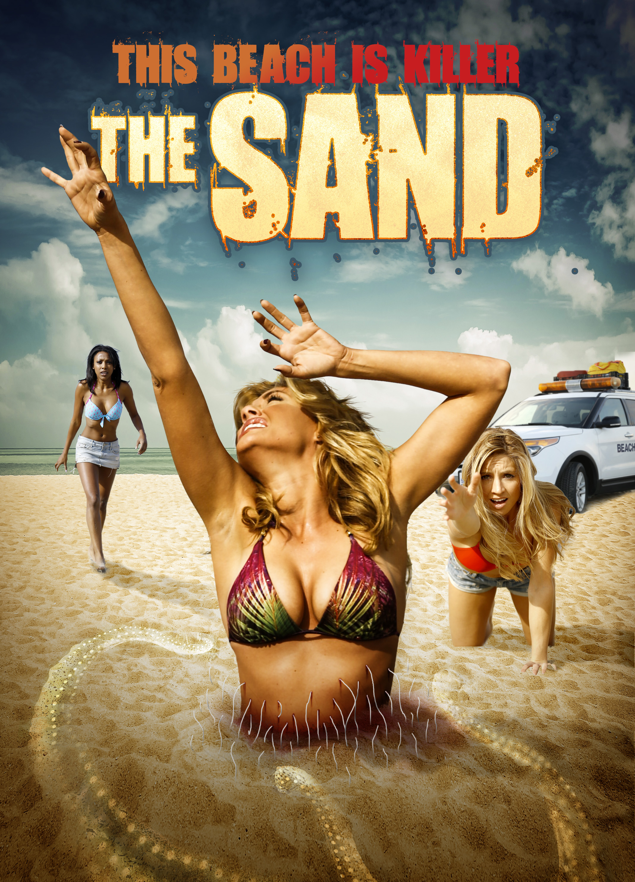 When classmates wake up on the beach after partyin’ all night, they’re horrified to learn somethin’ alien is hidin’ under the sand and digestin’ folks with its follicle touch. Like the world’s deadliest game of lava, the remainin’ survivors must put their melodrama aside and leap frog their way to safety. This is such an easy premise to fuck up, but the filmmakers effectively pull off a successful monster flick that shows how much can be done with so little. Of course a lot of this success is owed to the actin’ which is gold as far as I’m concerned. The gore and monster is so-so CGI, but it doesn’t distract from the tension or plot. Dick art on folks’ faces, canned students, high school datin’ drama, trunks closed on fingers, puss oozin’ gut wounds, bloody dissolved victims, mace and banana defenses, boobs, and Jamie Kennedy plays the useless authority figure! 4/5!