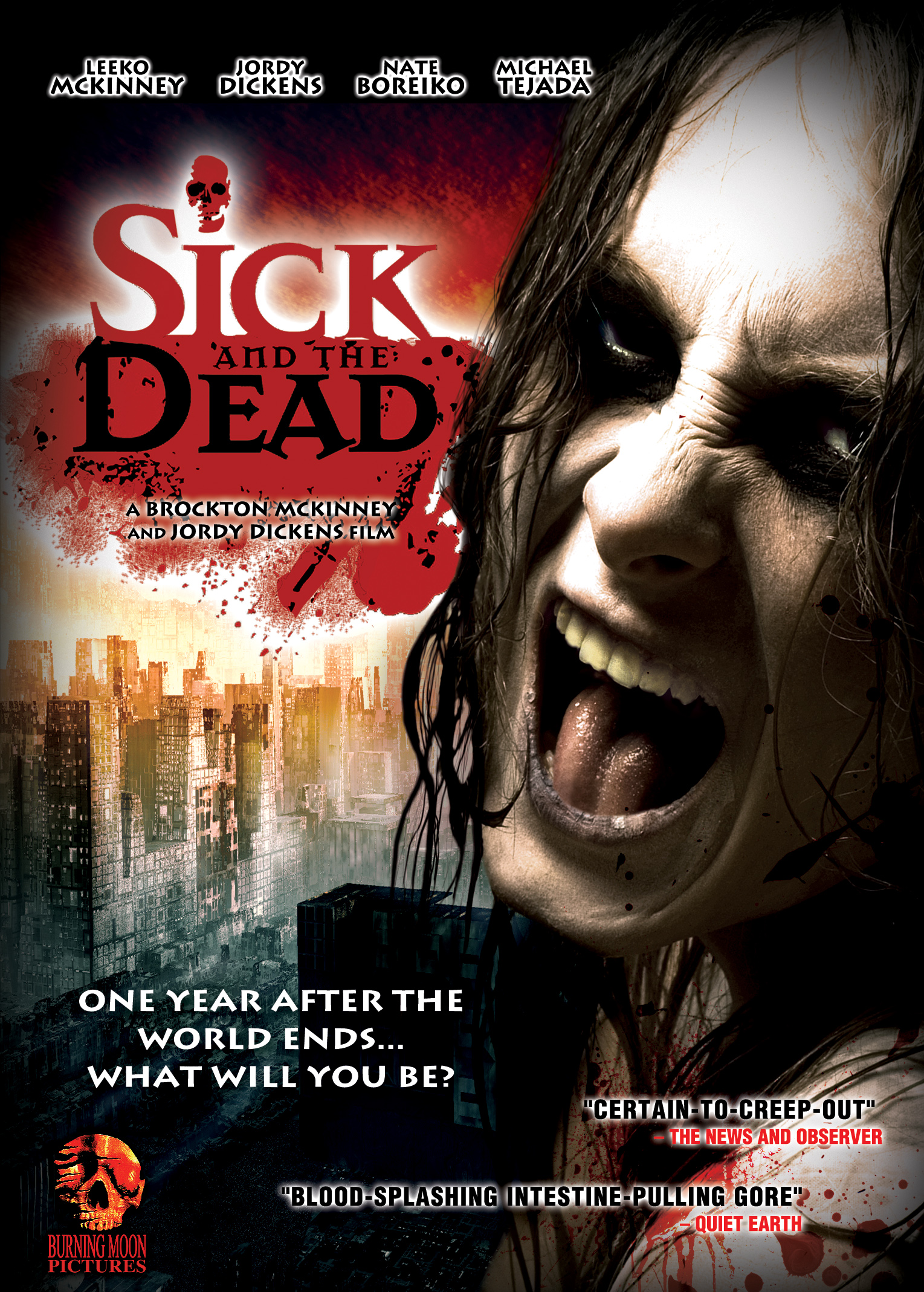 Half of this Z-grade flick is ’bout three strangers enactin’ the buddy system to hike the Carolina boonies durin’ the stompin’ zombie apocalypse . . . the other half are completely separate hodge podge shorts of nobodies gettin’ eaten by zombies that have nothin’ to do with the other half. Either the filmmakers didn’t know which film they wanted to make or they came up with some ambitious filler for paddin’ this baby out to meet the qualifications of a feature film. Even with a choppy plot and sins against the camera’s 180 rule, however, the actin’s alright, the gore is messy with some effective stabbin’s, there’s an original head bangin’ tune, and we get some new zombie lore ’bout the undead steerin’ clear of shit. Decapitations, arrows to the nuts, acid laced meat treats, attempted rape, bitin’, can on a string alarm systems, explodin’ heads, head stabbin’, treehouse forts, ceptic defenses, stabbin’s, gun fights, camper boobs, flashers, disembowelments, blows to the vagina, and dumpster forts! 2/5!