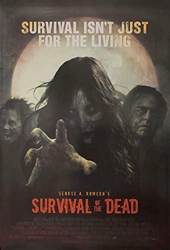 Heavily armed military deserters sail smack dab in the middle of a Hatfields and McCoys dispute ‘tween two island families and must decide if they wanna settle the feud over the treatment of zombies with executions or rehabilitations. A great lookin’ flick with perfectly fine lookin’ CG gore, this final walkin’ dead romp from writer/director George Romero makes up for his last flick, Diary of the Dead, but still falls short of bein’ anythin’ special. It’s a well made flick, mind ya, but there’s nothin’ remarkable ’bout the characters, the zombies they meet or how they dispense of ’em. Most unique thin’ that happens is the one family tryin’ to teach zombies to eat things that ain’t human. Now, that’s an interestin’ idea I wish was explored more! Fire extinguisher death gags, decapitated zombie heads on pikes, zombie shootin’ galleries, flamin’ heads, undead mailmen, zombie horseback ridin’, free for all horse dinners, zombie quick draws, arm bitin’, folks ripped in half, explodin’ brain baskets, and gun fightin’ massacres! 3/5!