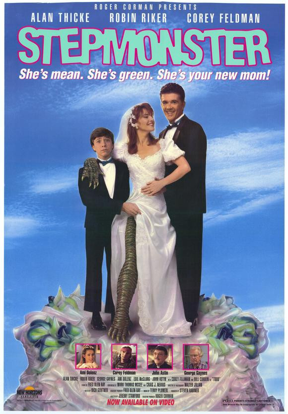 After a boy’s mama goes missin’ in the woods, it only takes his dad six months to get over her and surprise his son with a new gal he plans to marry, but the young’n suspects she’s a flesh hungry tropopkin from his monster comics and needs to out her ‘fore she boinks his pop fer monstrous honeymoon offspring. A family friendly fright that’s entertainin’ fer horror fans of all ages, this sucker is well paced, features a sweet lookin’ monster terrorizin’ suburbia with the help of a gnarly bat puppet, and has several scary flick favorites ‘mong the cast like Corey Feldman, John Astin, and Ami Dolenz. If I feel like strainin’ a brain cell to criticize such a light hearted flick fer sours, I do find the meta storytellin’ through the young’n’s tropopkin comic a little weird. It mirrors his situation a little too closely at times, and fer a supposedly random funny book, the monster seems to have already achieved Big Foot fame ‘mong the town folk with its own huntin’ signs in the woods. And while some descriptions of this plot say the dad is seduced by the tropopkin like he’s under its spell or somethin’, I never get that from the movie. The insensitive jerk really seems to just wanna remarry that fast with zero regard fer his son’s feelin’s on the whole matter. Coccoonin’, off camera flesh eatin’, pile o’ mauled canine, monstrous transformations, box bats, goldfish snackin’, bone gnawin’, peepin’ tommin’, violin weaknesses, home invadin’, cave dwellin’s, monstrous meltdowns, comic shop researchin’, front yard concerts, and lung hackin’ weddin’s! 4/5!