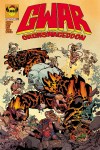 Turns out Dr. Herbert West has re-animated one of Vampirella’s worst enemies she fought back on her homeworld, and this lady of death seduces West to be her king and prepare a freaky army of re-animated spider people to fight Vampirella when she arrives. The action’s definitely pickin’ up in this one with e.t. war flashbacks and the initial beginnin’s of Vampirella’s throwdown with this mismatch beyond the Mexican grave. The black, white, and red artwork’s tight, the story’s escalatin’, and West is keepin’ me on the hook as a character who doubts his decisions in this space opera he’s unexpectedly involved in.
