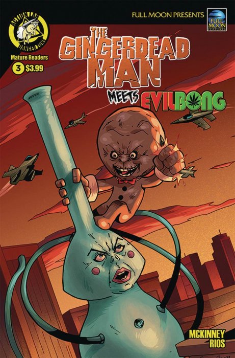 Concluding the first story of Full Moon’s most recent moneymaker, Gingerdead Man goes all out Game of Thrones on the dope dealing punks who resurrected him, unleashing armies of drug laced mini-gingers, flying candy dragons, and a giant cookie henchman! Way more to offer than most the movies, this has definitely been a comic worth picking up if not for its dark offbeat humor and cartoony gore.