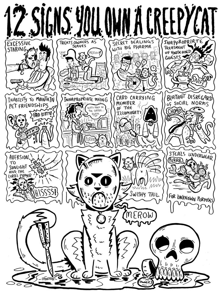 RM: Creepy Cat is a humorous web comic based on our actual cat, hockey mask and all! Her real name is Mephistopheles, and we had the choice of taking her in or letting her devour our souls!