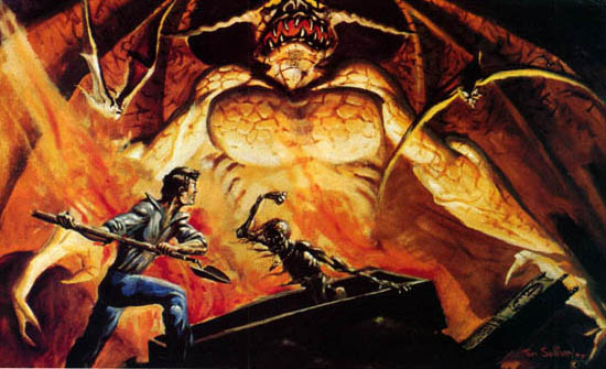 DW: Looking at your Cthulhu illustrations, it would have been kick-ass to have seen Ash fight more of your monsters in Evil Dead 3 aka Army of Darkness! Out of curiosity, why weren’t you included more in this sequel? You were all over the first one, provided amazing bookend stop-motion sequences for the second one, and then I think you’re only credit in Army of Darkness was designing the newest version of the Necronomicon?
