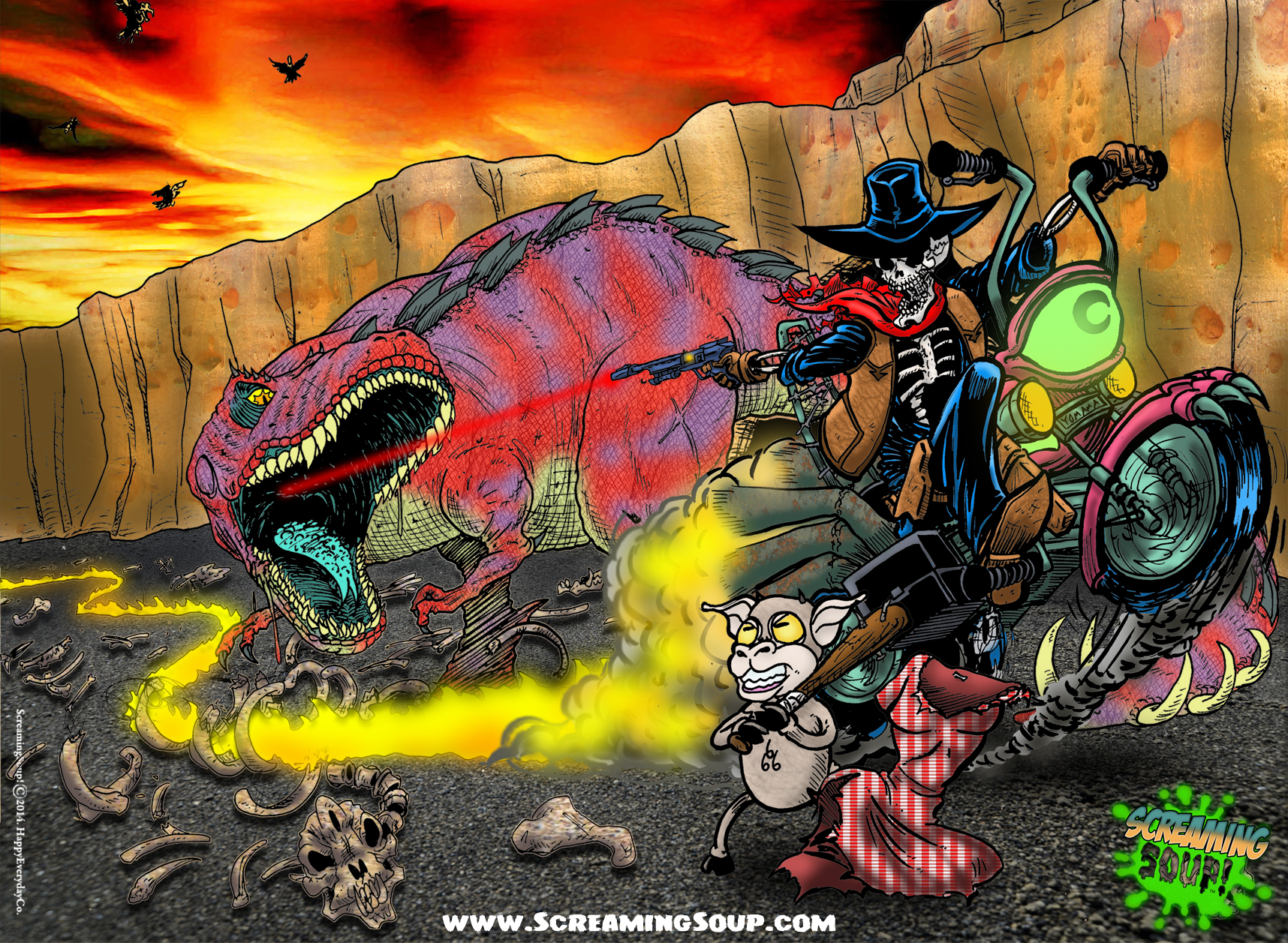 I just found out about you guys! You’re awesome! Like Green Jelly meets Dino Drac, but with Horror reviews! I love your style