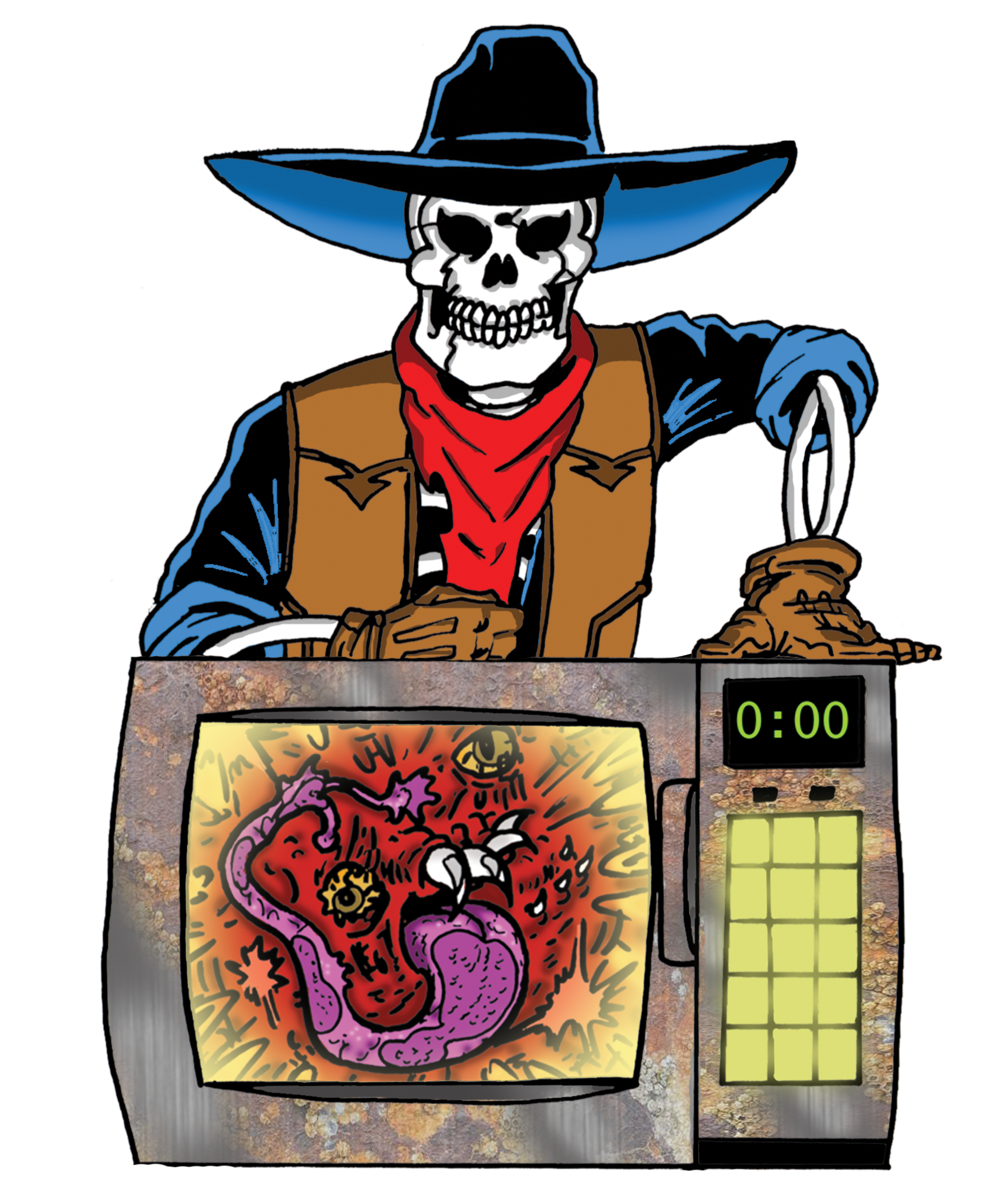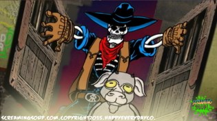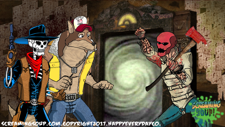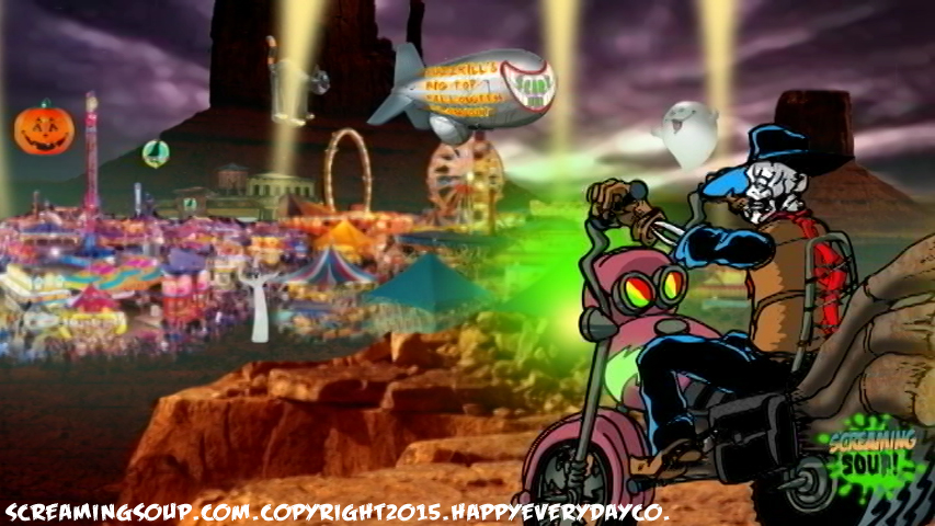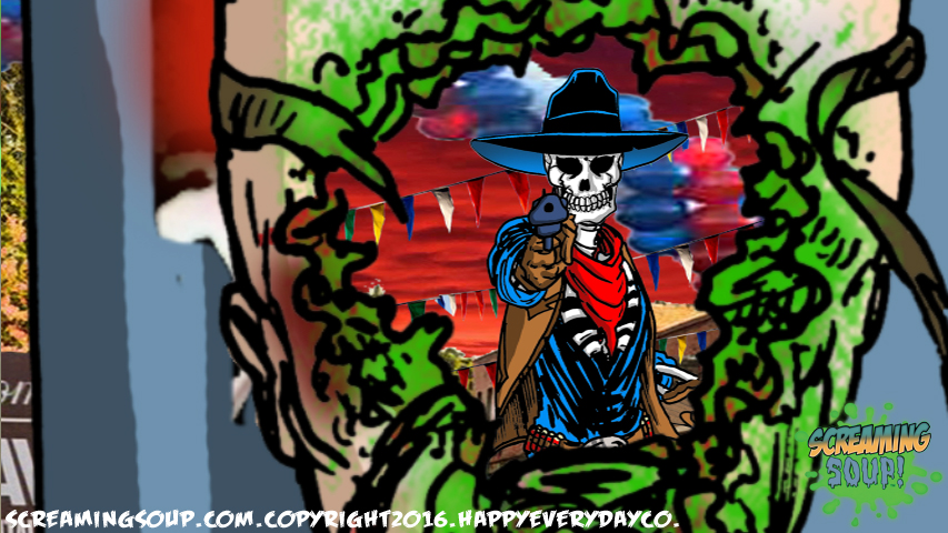 Screaming Soup stars Deadwest, a gas guzzling, ray gun slinging skeleton cowboy, who reviews obscure fright flicks from yesteryear in a condensed format popular among YouTube audiences. A kaleidoscopic cast of original characters rides along with our animated horror host for episodic adventures that bookend quick-witted commentary.