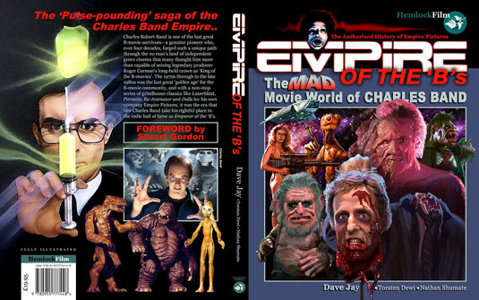 When we here at Screaming Soup! think Full Moon, we think of its head honcho, Charles Band. Charlie’s been in showbiz for a long time and is partly responsible for an assload of horror and sci-fi films fans have no problem recognizin’. His first notable company that pumped out a lot of popular flicks was Empire Pictures which produced and/or distributed films like Re-Animator, From Beyond, Rawhead Rex, and too many others to name. After a few years, Charlie relocated his base of operations and transitioned to bein’ Full Moon as part of that move. So, since we identify Full Moon as Charlie and Charlie was Empire, then Full Moon = Empire for us. This is why the Jeffrey Combs characters refer to Charlie as Emperor Band as an acknowledgment of their ties to Empire Pictures. Plus, for entertainment purposes, this parody war is 10x more fun addin’ all those Empire characters with Full Moon’s current stars like Gingerdead Man and Killjoy. And if you need more proof, Scream Freak, just refer to the book Empire of the ‘B’s: The Mad Movie World of Charles Band by Dave Jay. Herbert West, Rawhead Rex, and From Beyond are even on the cover with Charlie!