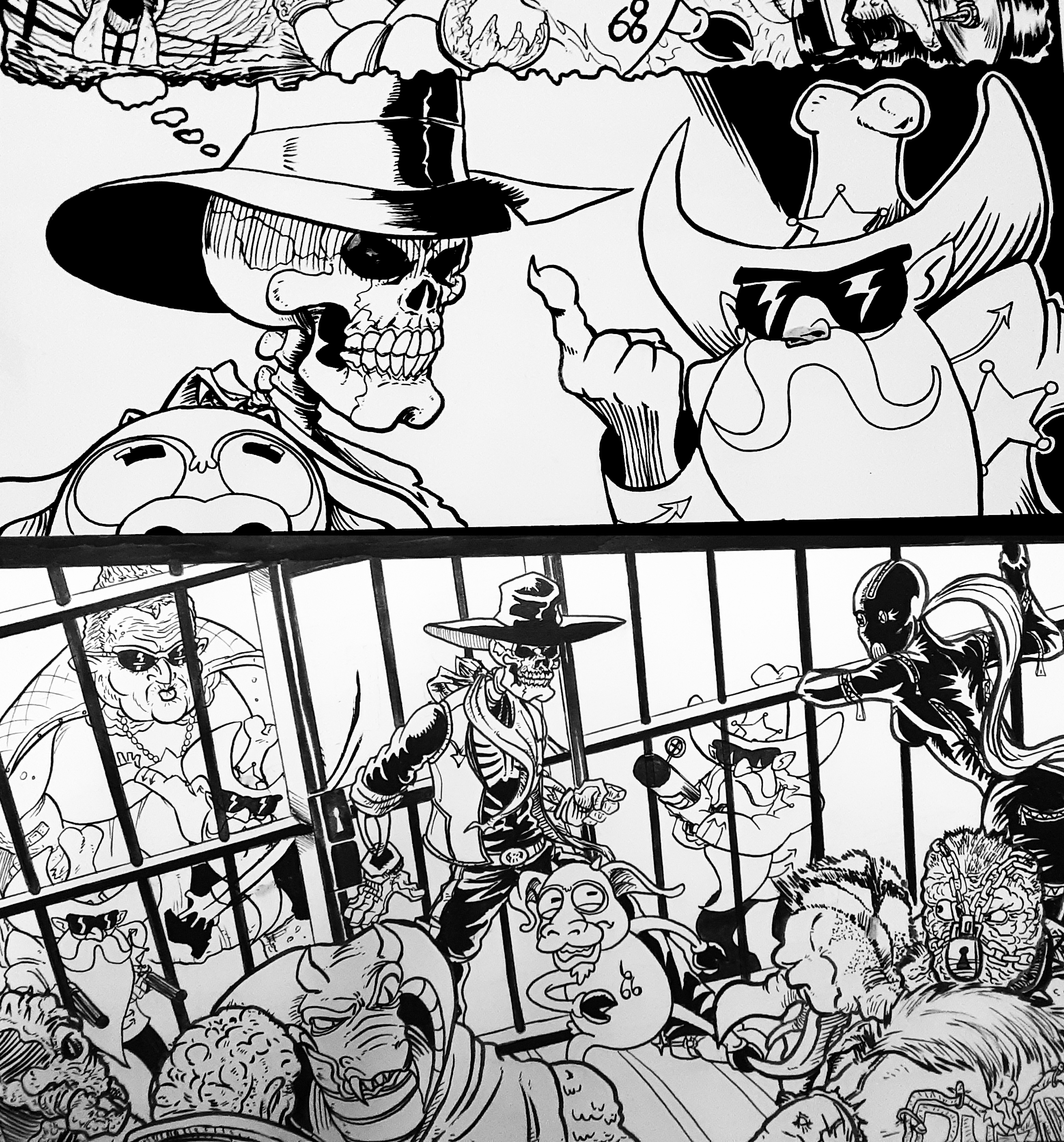 We’ve been mentionin’ plans for a Screaming Soup! prequel comic, and we meant it, dammit! Already completin’ the layouts for a four issue mini-series a while back, we finally put pen and ink to paper and already knocked out six pages of the first issue. It’s comin’ ‘long slowly but surely, and is wild to watch the progress we make from page to page as we become more comfortable settlin’ on a particular style and technique for powerin’ through this nuance packed medium. We’ll be sure to throw some sneak peeks of it up sometime.
