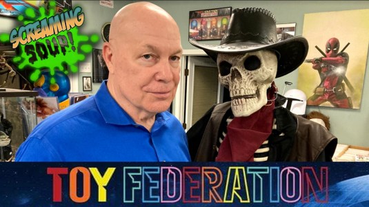 On a cheerier note, we’re proud to return to our favorite one-stop toy chest for yesteryear and today’s playful plastics, Toy Federation, and hang out with the latest celeb passin’ through, Michael Bailey Smith! Now, if ya don’t recognize him, that’s no surprise given he’s been under alotta monster make-up for most his career. First hittin’ the screen as Super Freddy in A Nightmare on Elm Street 5: The Dream Child, that accidental castin’ launched Michael’s career as a heavy favorite from the mutant cannibals in The Hills Have Eyes remakes to playin’ several supernatural villains on TV’s Charmed.