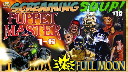 As teased and promised for a while now, Full Moon’s Puppet Master gang will finally be makin’ their debut in this war to end all indie cinema. We’ll explain where they and the rest of Full Moon’s dolls have been this whole time, reveal Troma’s toxic picks for fightin’ them, and review the first six Puppet Master flicks in our first ever Ultra Edition of Screaming Soup! Yup, for those keepin’ track, Super Screaming Soup! is three reviews, Mega Screaming Soup! is four to five, and Ultra is six or more. And in the Puppet Master series’ case, it’s A LOT more with the rest of the series (includin’ Puppet Master vs Demonic Toys and hopefully the newest one(s)) scheduled for a review 9/20/17. That should certainly make up for their absence, huh?